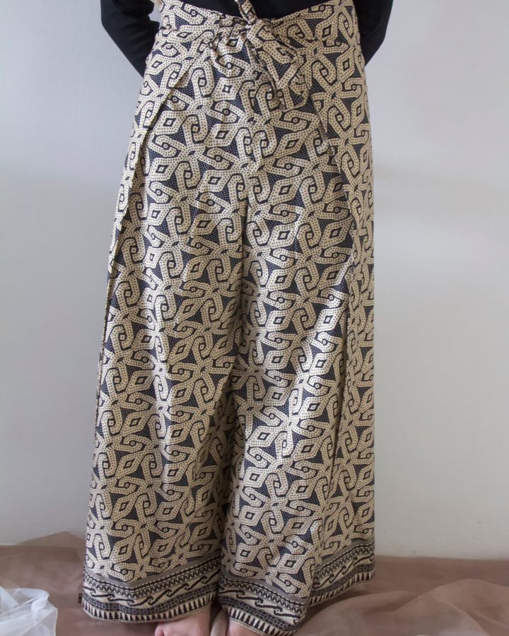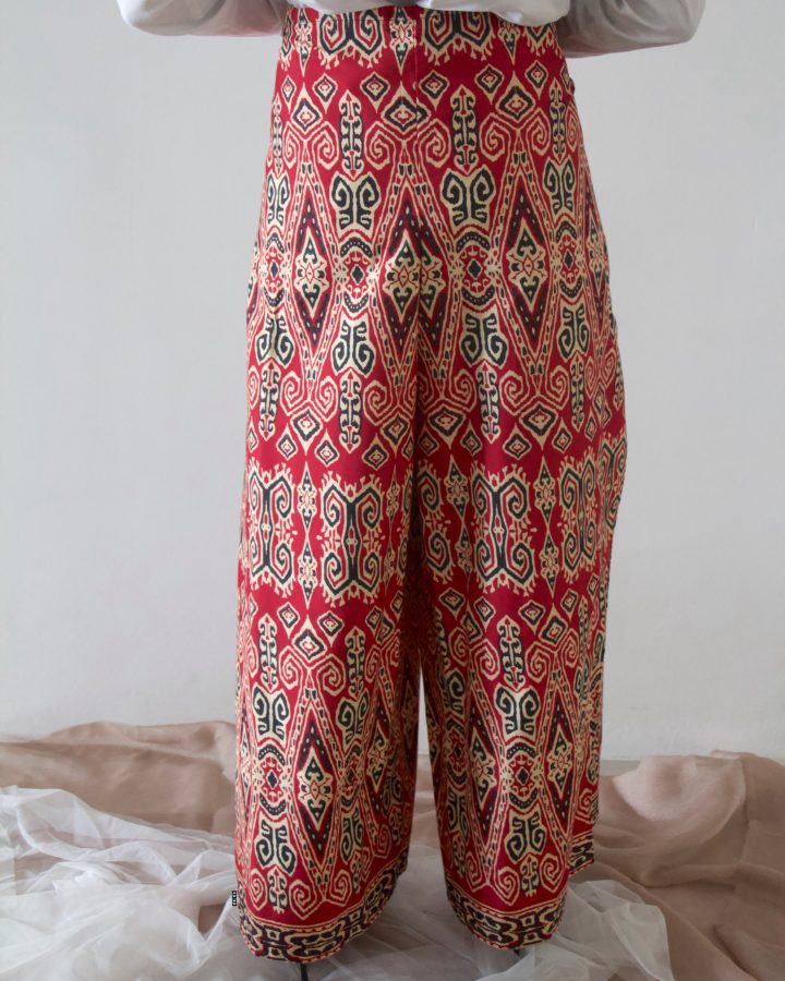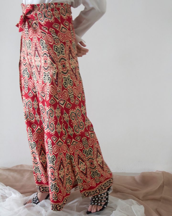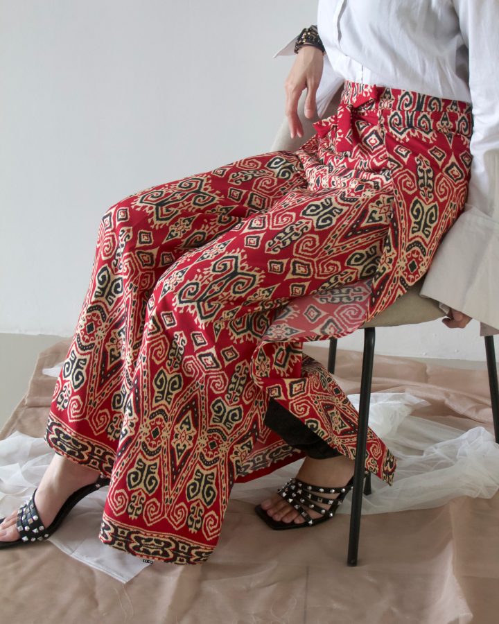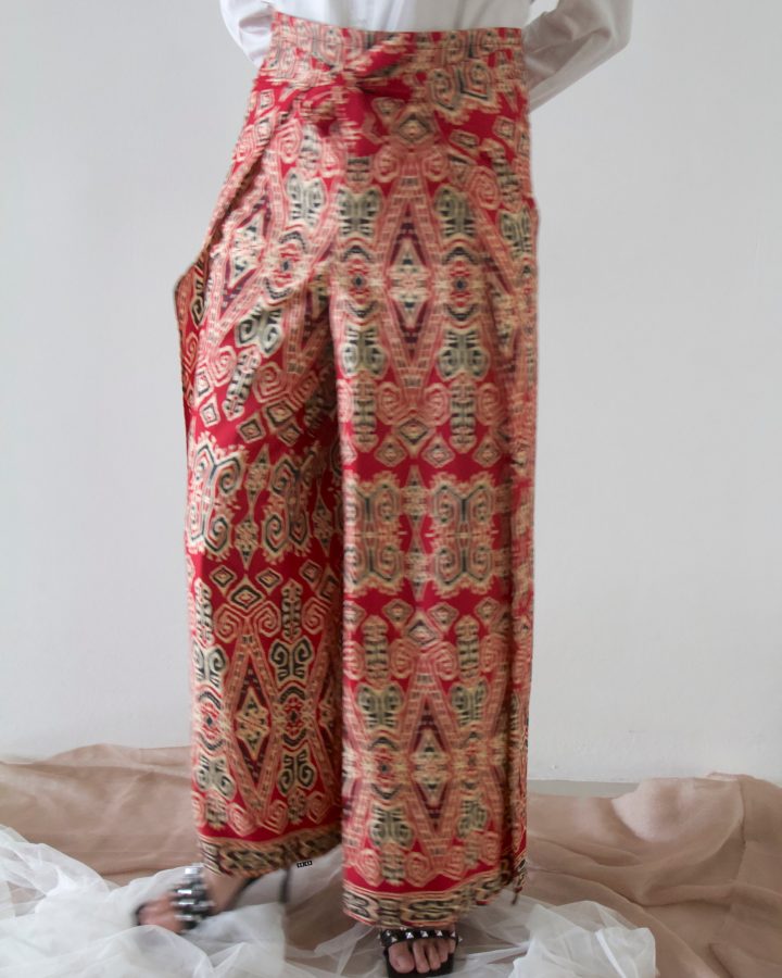 It’s a 2-in-1 wrap pants which can also be a jumpsuit! How versatile it is, right? You can get two looks from just one piece. The ’57 x ’63 uses printed Sarawak batik made in the state itself cause we just relates too much to it. Let’s get ‘batik-ed’!