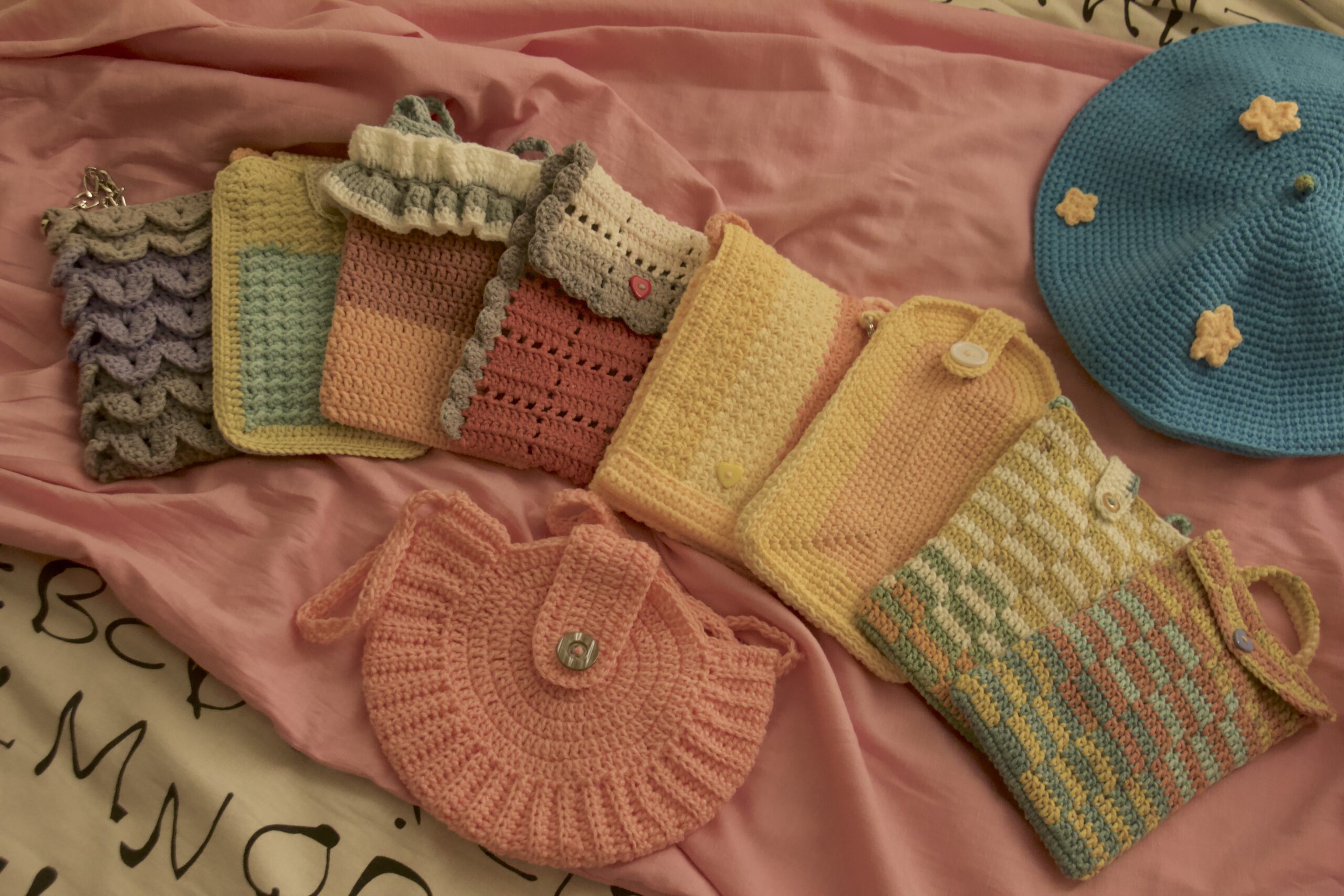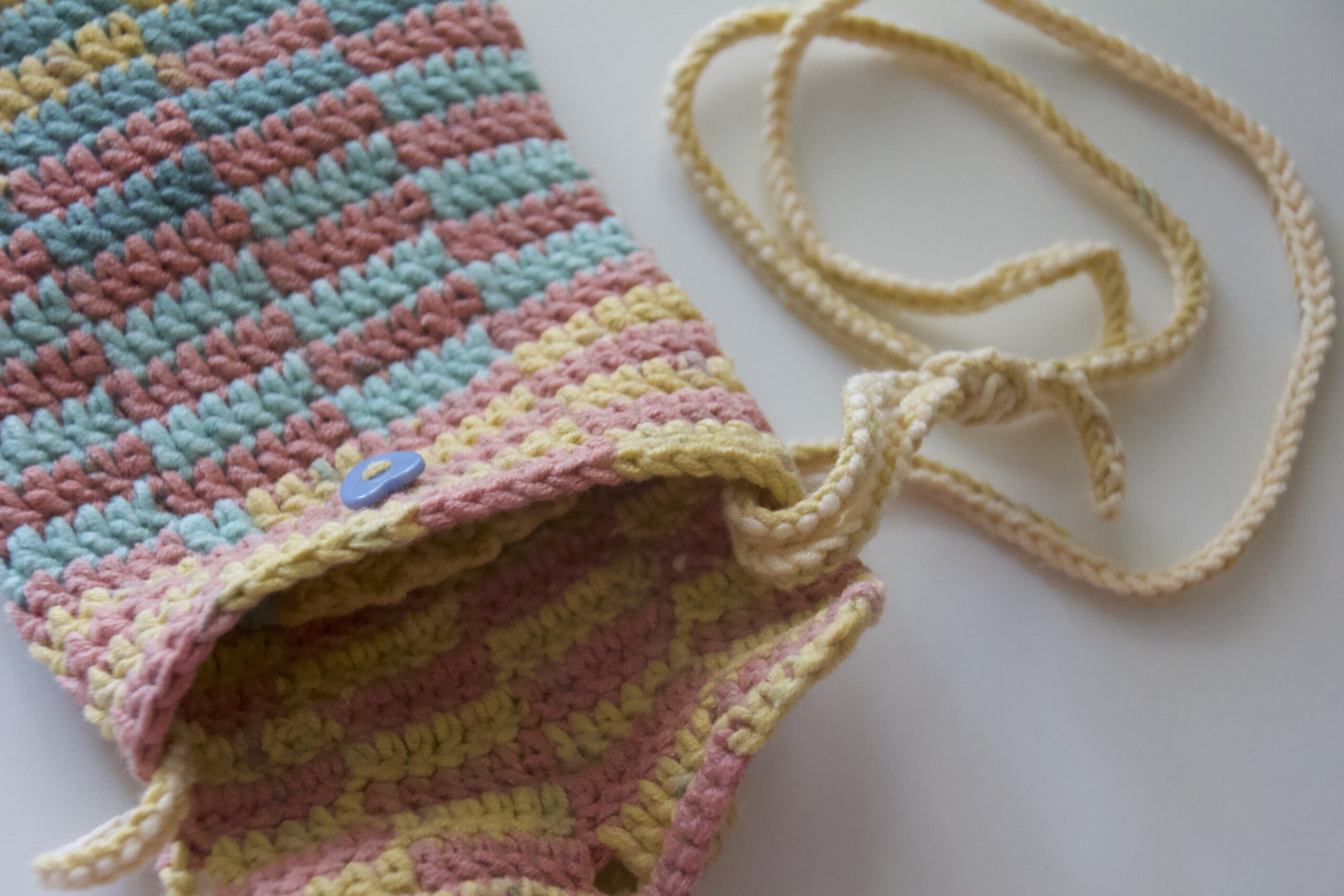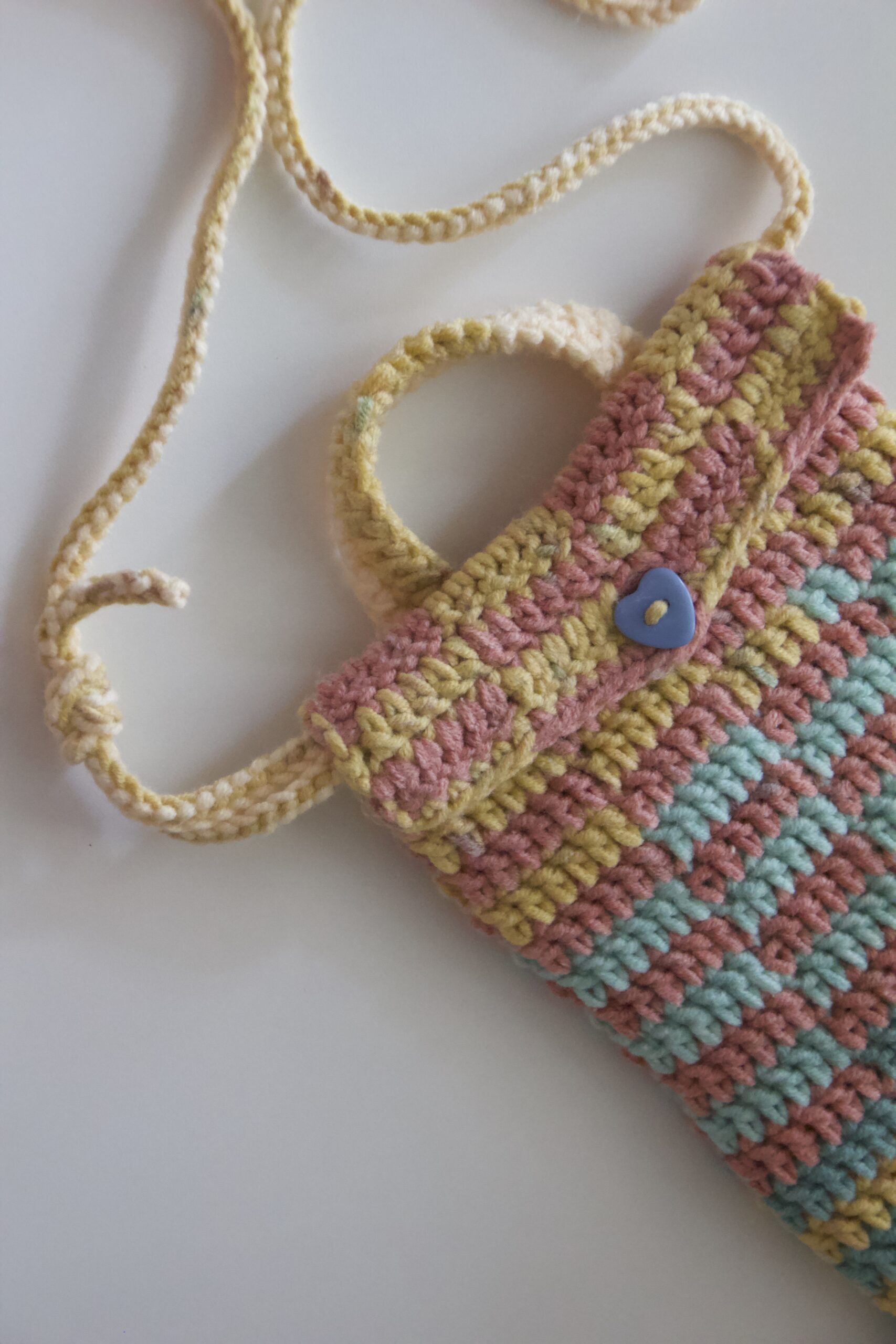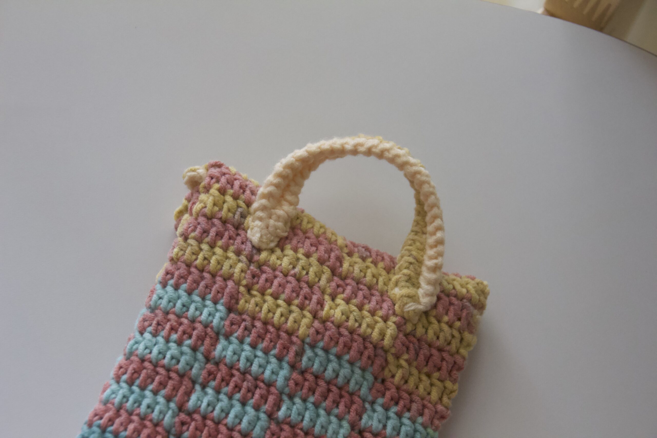 A mini bag specially made for your phone and cards using magical coloured yarns (see more in IG Highlight). Comes with a card slot inside the bag.