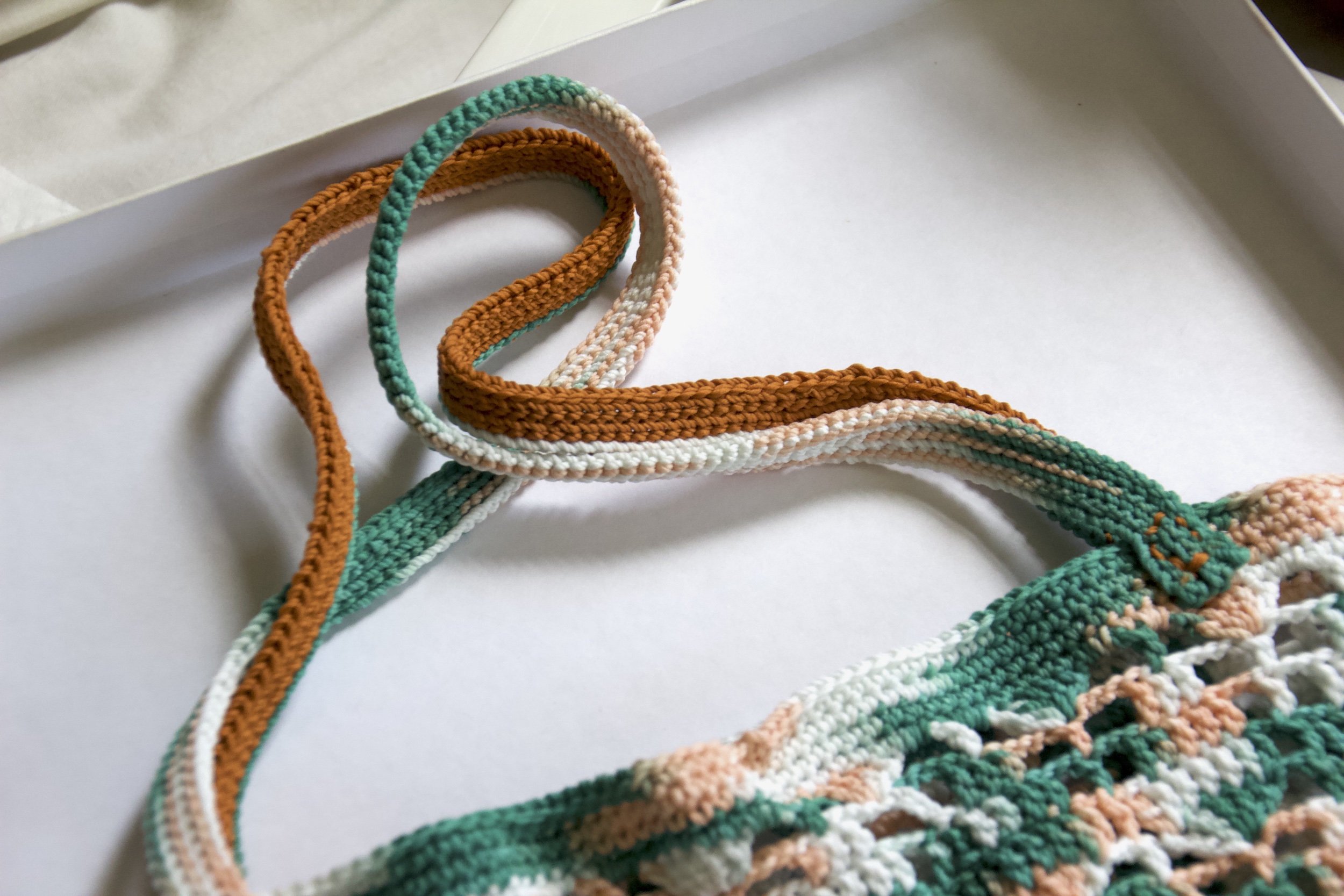 A Korean style inspired tote bag made of polyester crochet yarns.