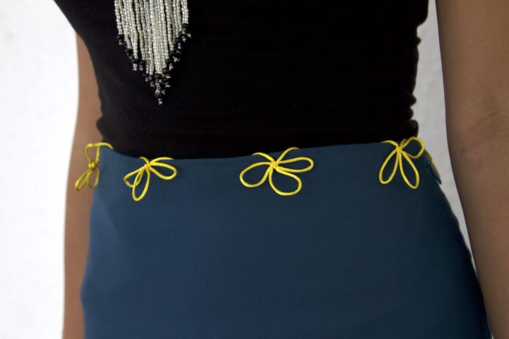 Details: Waist (27″), One side Panel, Handmade knots at the Waistline, Invisible Zipper