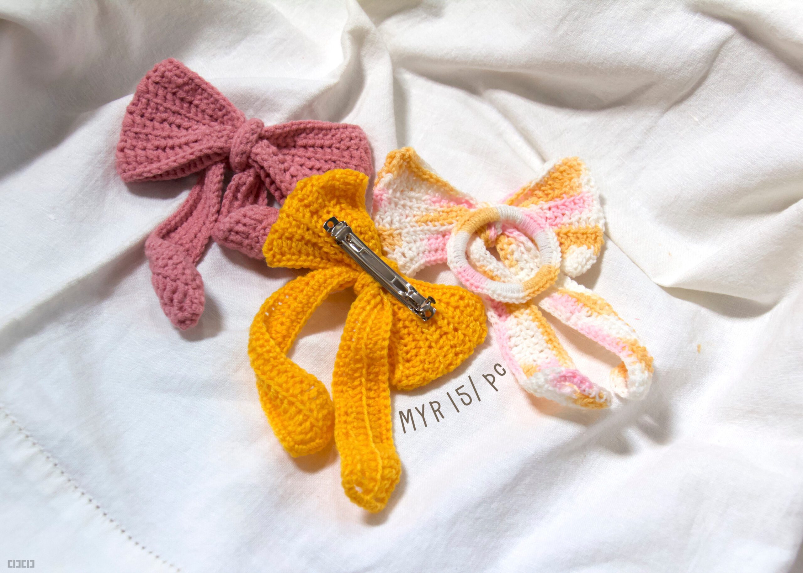 Part 1: came from one of the designer’s hobbies and talents, crochet. Yes, in this part, you’ll get to have another crocheted accessories but for your hair or even as headpieces on your hijab; scrunchies, headbands and hairclips~