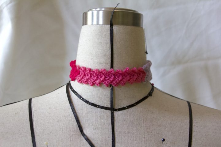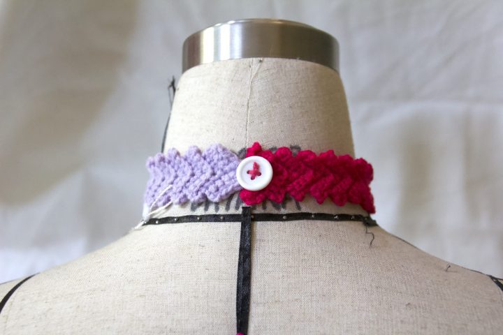 ss18 Accessories: Handmade stretchable pastel crocheted band of chokers.